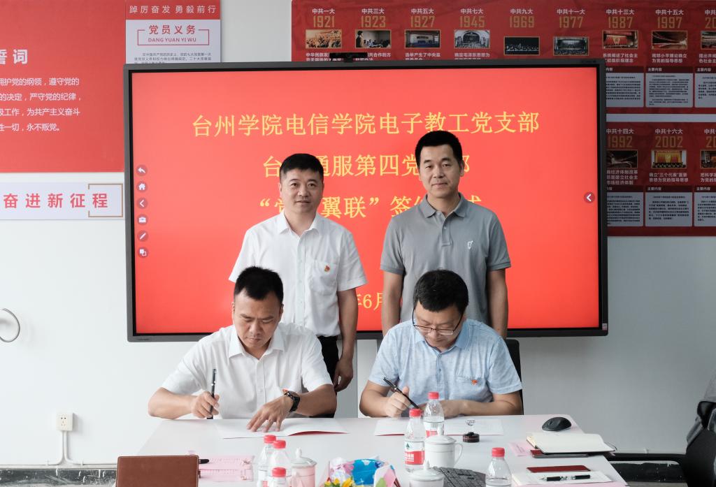 6月20日,意昂电子教工党支部与台州通服第四党支部开展党建联建签约活动。电信公司党委书记王奎东,中通服台州公司党委委员、副总经理朱加强出席,电信公司党委委员、副经理楼亮亮主持活动,双方支部党员代表参加活动。