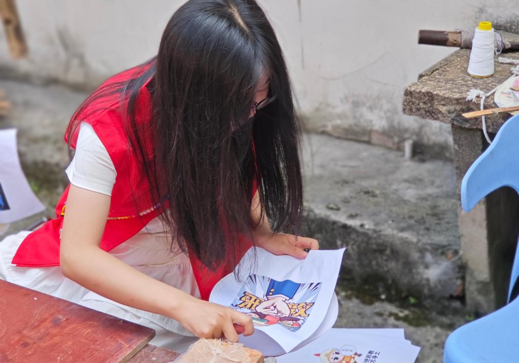 手持自己完成的纸扇步出作坊,夏风穿过竹骨宣纸,送来一阵沁凉。这是一场非物质文化遗产与反邪教的交流碰撞。这把轻摇的扇子,不仅承袭了百年的竹韵纸魂,亦将一缕反对邪教、相信科学的清风悄然植入实践队员们的心底。每一次扇动,都似在无声提醒:以文化之韧,拒虚妄之风,让清朗正气在时代流转中恒久绽放。