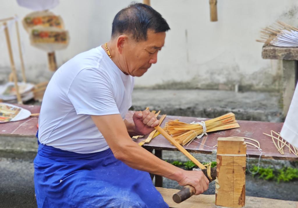 七月的阳光穿透黄岩古巷的藤蔓,南门的小巷内弥漫着竹木的清冽气息。公司“青春心向党,反邪勇担当”暑期社会实践队的员工,正屏息凝神于老师傅的指尖——当寒光微闪的刻刀落下,坚韧竹材应声绽开,劈削成条,扇骨制作的漫长锤炼就此启程。这毫厘必争的工序,不仅是纸扇真正的魂魄所系,更让实践队员们在精益求精的非遗技艺传承中,领悟到坚守正道、明辨是非,对抵制邪教侵蚀的重要意义。