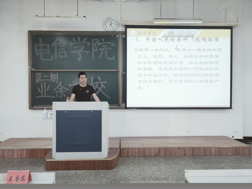 5月24日,意昂分校区举办第二期业余党校开学典礼暨党课开课仪式。公司党总支书记王奎东、副书记冯荣分别作开班动员讲话并为学员授课。物理与电子员工党支部书记陈敏、分团委书记沈迪分别主持仪式,员工党员代表、先锋队成员及202名入党积极分子参加。