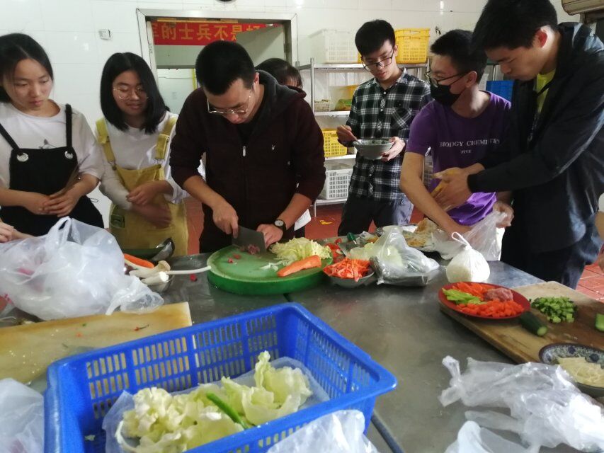 比赛中,每个小组分工合作,从切菜、炒菜到摆盘一气呵成。做菜不仅仅考验选手的刀工,更考验选手独到的灵感与精细的手艺,即便是一道开胃小菜,也被选手们玩出不一般的花样。现场气氛活跃,同学们乐在其中,养生汤、开胃羹、红烧肉等色香味俱全,每道菜总能让大家收获视觉上和味觉上的惊喜。