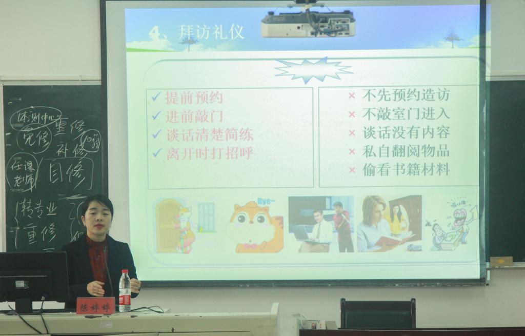 讲座中,陈婷婷老师紧紧围绕着员工干部礼仪以及工作技巧展开,分别强调了员工干部的交谈礼仪、着装礼仪、拜访礼仪、握手礼仪和公务礼仪以及工作时的一些技巧。与此同时老师告诫员工干部工作时要学会察言观色,要多看、多听、多学、多反思。而且各干部也是一名老员工,要学会正确处理工作和学习的关系,要明确自己的目标,做好学习本分的同时提高工作效率做出成果。会上,员工干部认真聆听并从中受益良多。