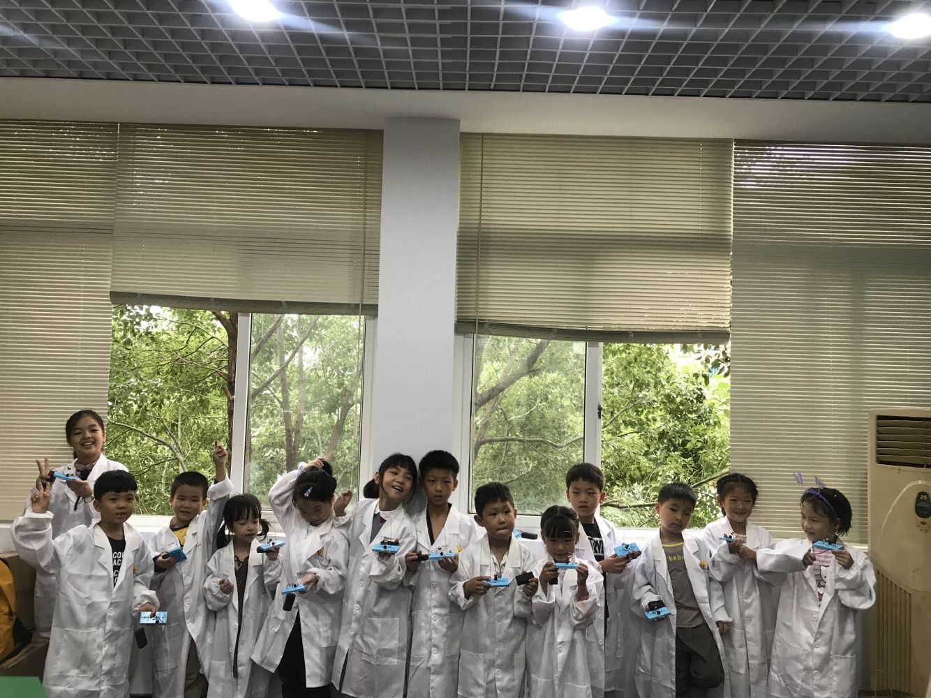 这次实验活动的主题是制作地震仪,实验对小朋友来说比较有挑战性。指导教师在前面讲解如何制作,小朋友们既认真又好奇地听着课,并自己动手开始制作,志愿者们在一边引导小朋友们完成一些比较困难的步骤。整个实验过程中无论是志愿者还是小朋友都能共同学习、成长。经过了一个小时的努力,最终小朋友的手中都诞生了一个个精美的地震仪,实验相当成功。小朋友们拿着成品上台拍照,洋溢着自豪的笑容。
