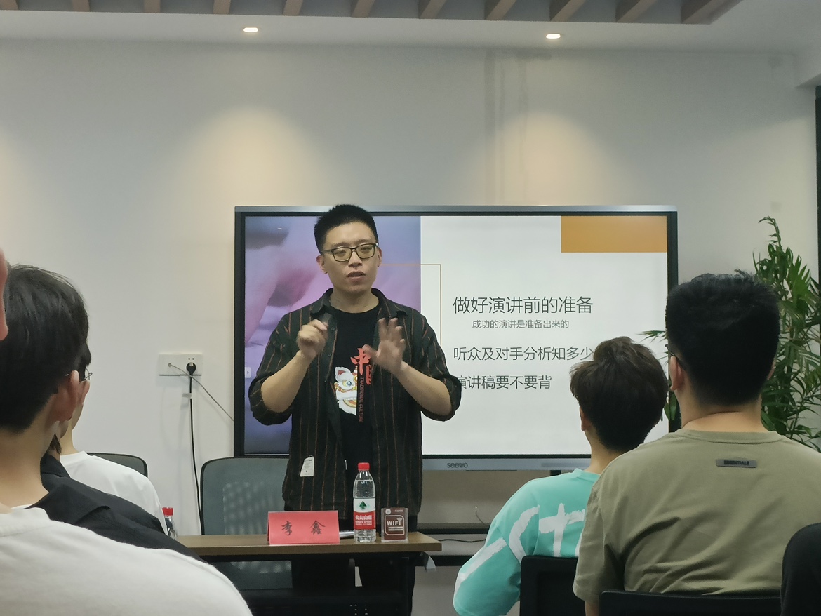 活动伊始,李鑫随机抽取同学回答有关演讲能力问题,并针对同学们的自我介绍进行了情感表达训练,结合自身经验分享演讲技巧,告诉同学们演讲之前要有充分的准备,演讲时有强大的心理素质,要注重语速仪态,把握好时间。演讲内容要围绕关键点并让人信服,同时也要学会随机应变。演讲是一门很重要的艺术,要对演讲保持热爱。本次讲座内容丰富,讲解生动具体,有助于员工干部学习提升演讲水平,提高综合素质,促进员工工作的有效开展。