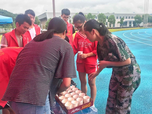 一阵秋雨一阵凉。一杯暖暖的姜茶,不仅暖了新生冰凉的手,也温暖了他们的心,让新生们感受到公司、老师们对他们的关心和关爱。虽然阴雨连天,但新生的心是暖暖的!愿2018级新生们乘着这股“暖风”,在日后的军训中发挥吃苦耐劳、敢打硬仗的作风,抖擞精神,勇夺头魁。