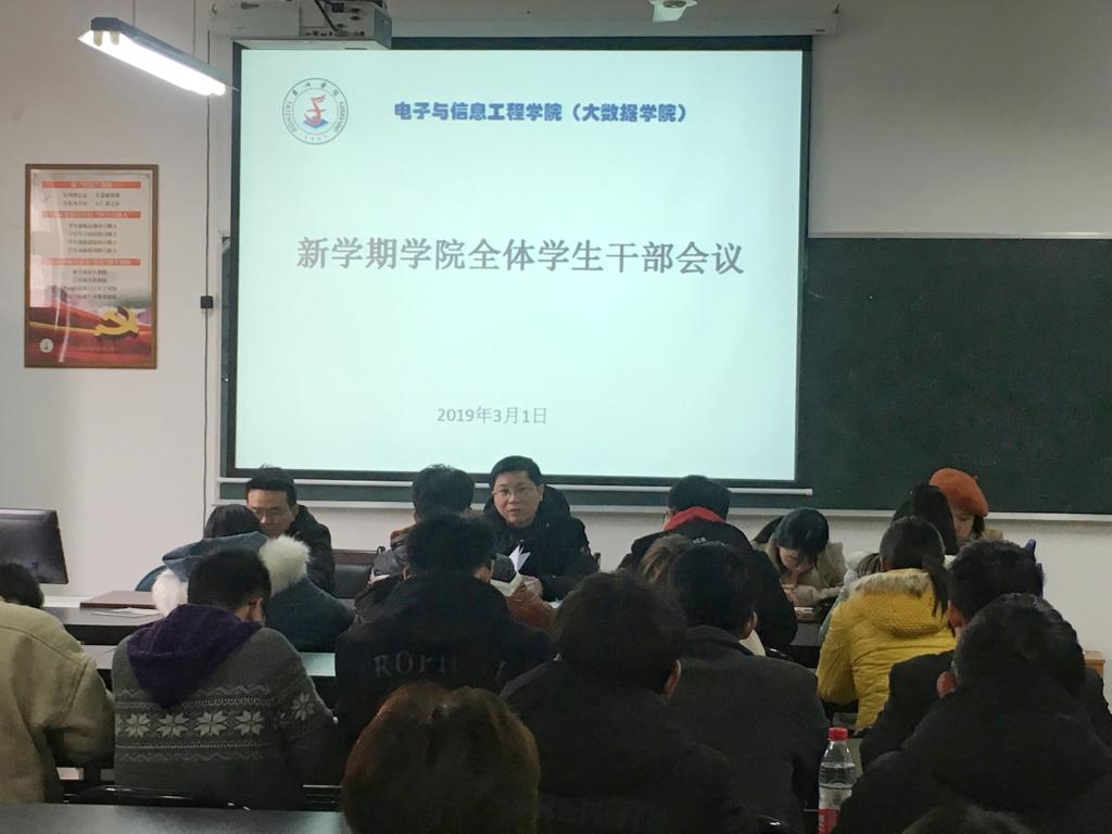 3月1日,公司举行新学期全院员工干部会议,电信公司党总支副书记冯荣、各年级辅导员出席会议,各员工组织主要员工干部、各年级班长团支书、员工党支部支委等参加会议。