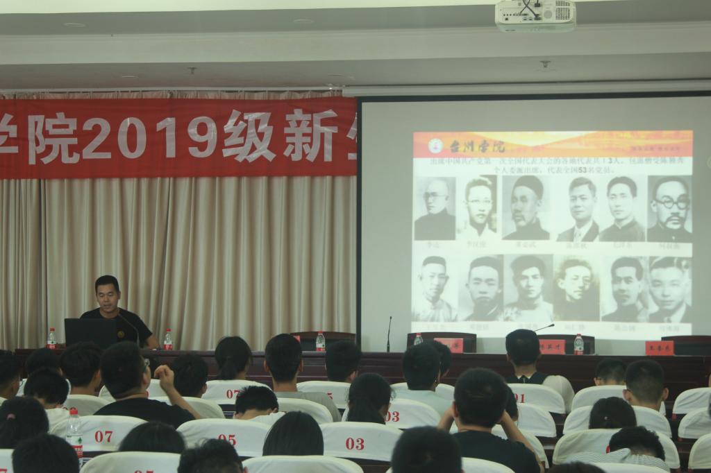 9月10日,意昂党总支书记王奎东在临海、椒江两校区分2个场次为公司全体2019级新生讲授了入学第一课《中国共产党简史》。