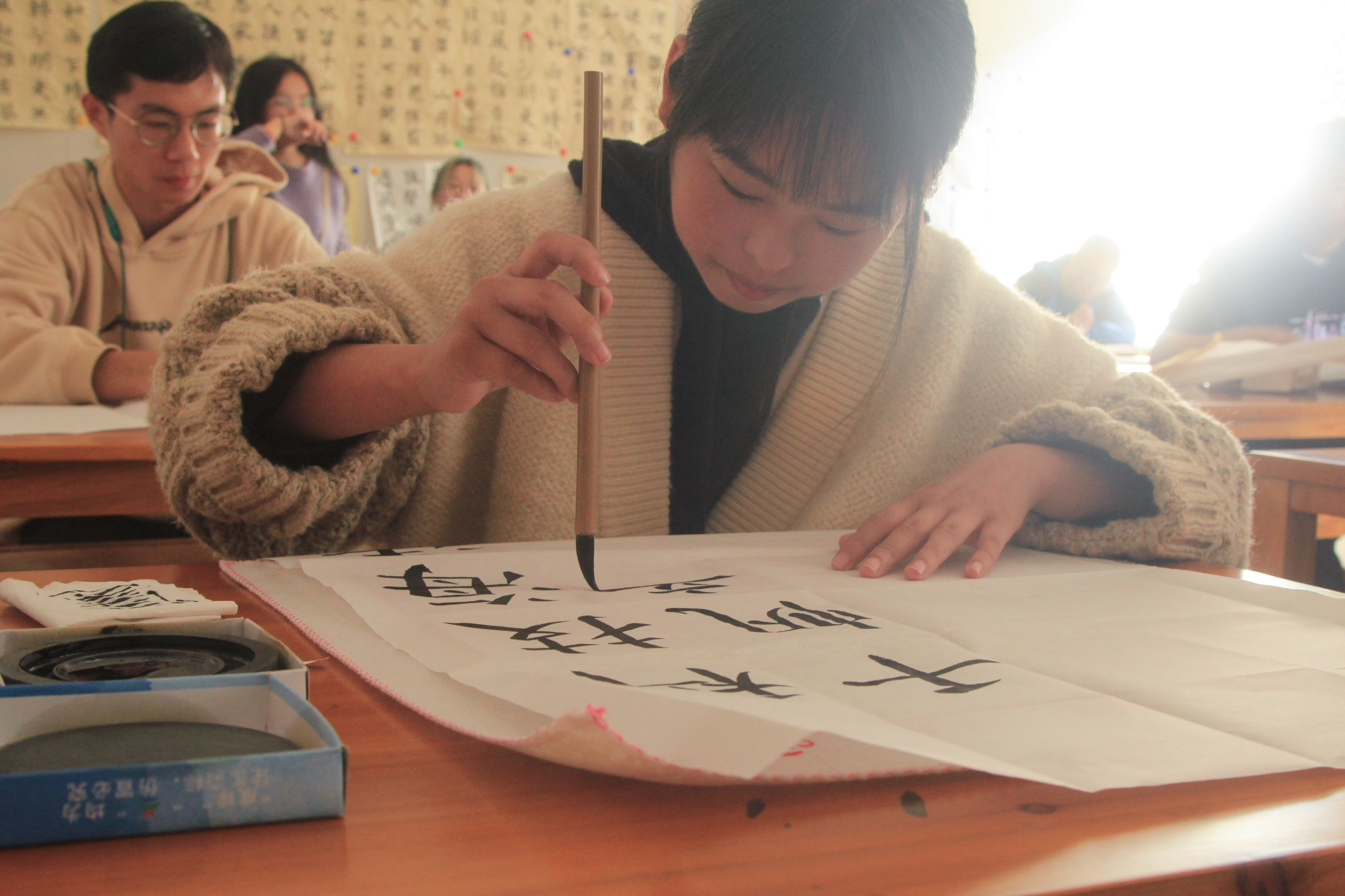 三笔字大赛包括粉笔、钢笔和毛笔三类书写工具,每组比赛时间均为半小时。比赛过程中,选手个个精神专注,书写更是用心十足。粉笔字清晰工整,大方干净;毛笔字如行云流水,一气呵成;钢笔字或隽永清秀或大气磅礴,在比赛规定时间内,选手们纷纷交上自己满意的作品。