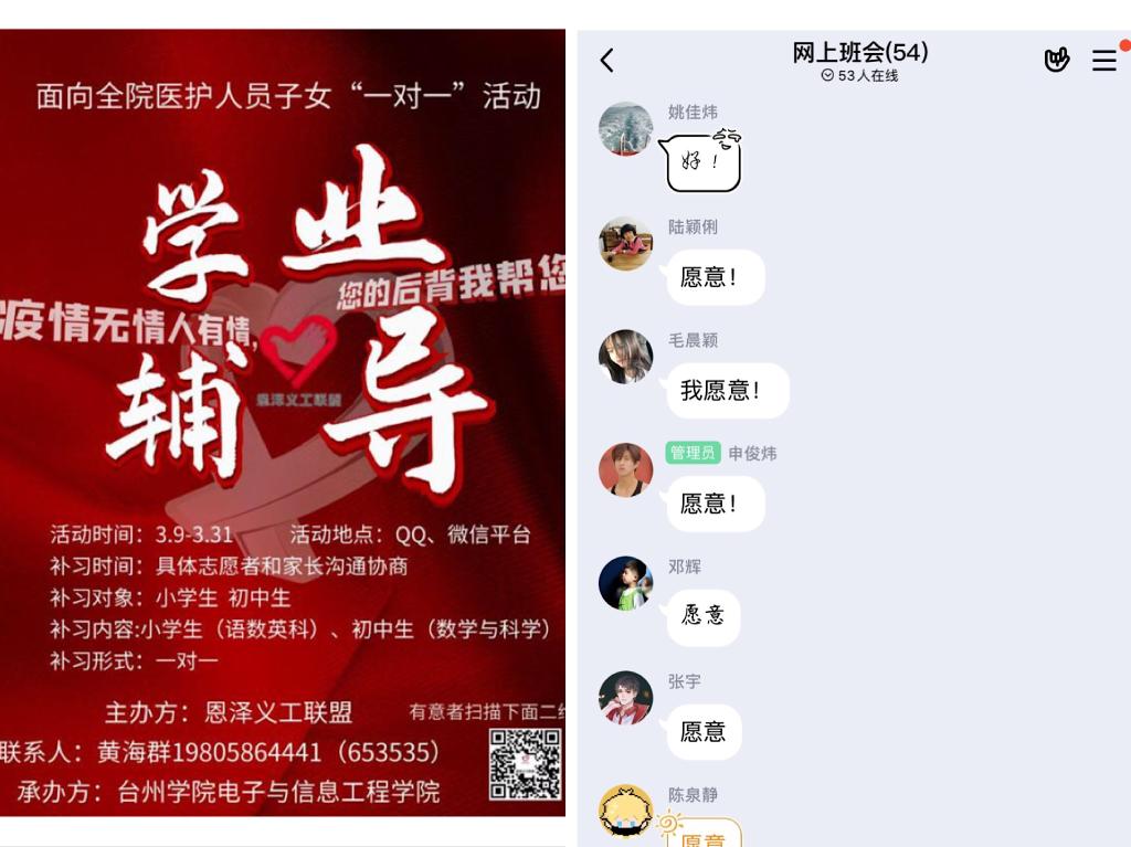 奋战在抗疫前线、为人父母的医护人员们,最牵挂的莫过于家中的孩子。3月5日,意昂分团委面向全院员工发布“最美志愿者”招募令,号召同学们积极参加本次极富意义的线上“阳光家教”活动,为台州抗疫第一线的医护人员子女提供爱心学业辅导的服务。同时,公司高度重视本次活动,搭建了完善的志愿服务考核及激励机制:根据志愿报名的类别、专业,按照比例进行统筹计划和详细分类。在教辅开始前集中培训指导;在服务期间统计志愿服务的时长,追踪补习的效果反馈;在志愿服务结束后,向志愿者颁发由院志协统一认定的证书。这一机制的建构有力保障了本次“阳光家教”活动的顺利开展,活动一经发布,来自院属员工组织的青年党员、团员先锋、员工骨干等纷纷请战。据不完全统计,截止3月12日,报名人数已达105名,由此便组成一支给力的线上“阳光家教”志愿服务队伍。志愿者们提前备课,细心为每位员工制定专属的辅导方案,进行包括作业答疑、在线课程辅导、网上家教及心理疏导等一对一精细化服务。截至目前,来自台州医院、台州市中心医院等近20多名医护工作者纷纷为子女报名,引起较大反响。