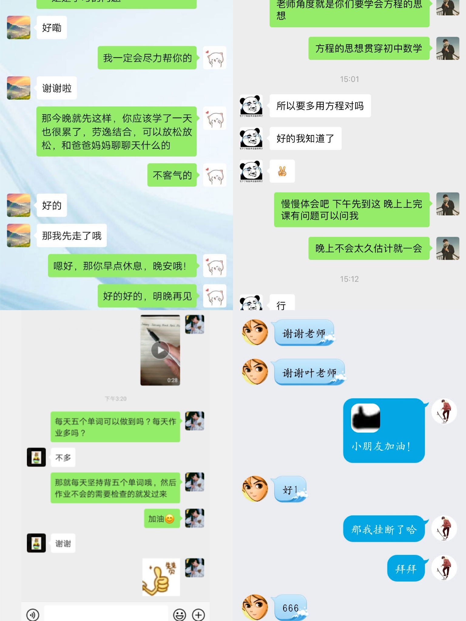 此次活动我分配到的是一名初二的员工,他的父母奋战在武汉疫情的一线,这让我十分的尊敬,也让我下定决心不让前线的他们担心,我一定做好家教任务让前线放心。由于疫情影响不能面对面式授课,只能通过网上视频授课,这是我没有经历过的,所以对我来说也是一种挑战,但我相信通过这几个星期的网上听课和我扎实的师范生能力我可以掌握好网上授课。