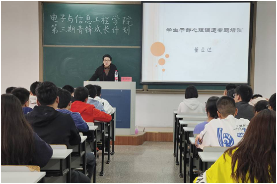 10月22日下午15:30,意昂青年马克思主义者培养工程暨第三期青锋成长计划讲座第二讲于2-402教室顺利举行。电信公司党总支委员董立达老师出席本次讲座并发言,同时分团委员工会员工干部、各班班长及团支书参加本次讲座。