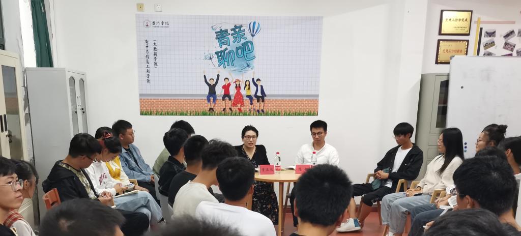 10月16日晚,意昂在椒江校区举办第15期青亲聊吧活动,公司党总支委员董立达应邀参加,以“遇见﹒最美”为主题,与同学们进行互动交流。活动由公司辅导员陈敏主持,20级新生代表参加本次聊吧活动。