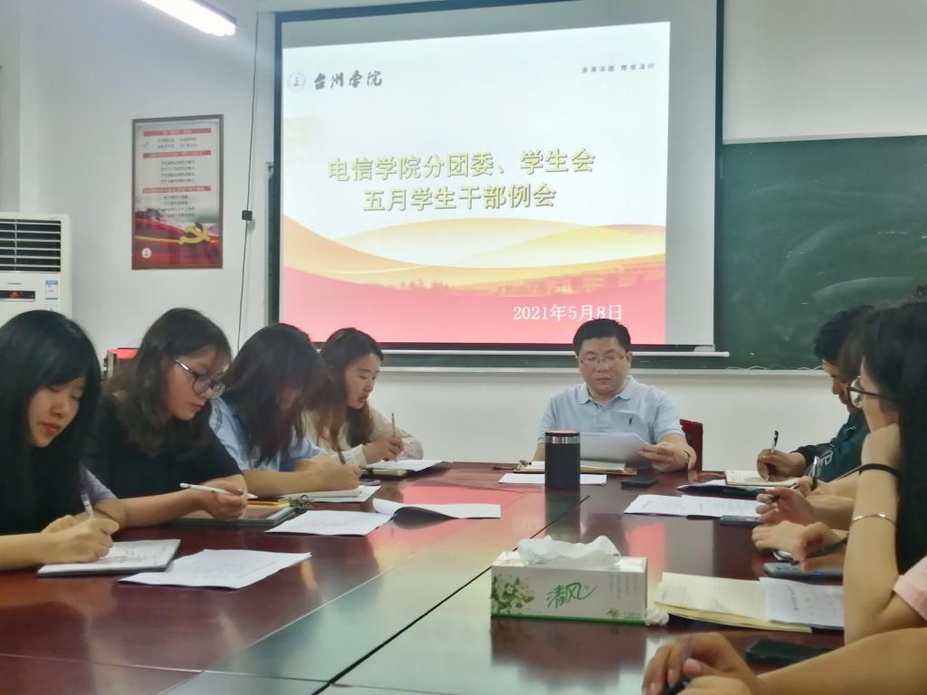 会议伊始,团学会各部门负责人依次总结、反思近期的工作内容,同时提出下一阶段的工作展望。随后,辅导员沈迪、吴佳妲就 团学会活动组织策划、活动过程的安全保障、优良“三风”建设、员工干部作风建设、公寓安全等方面提出了具体要求。