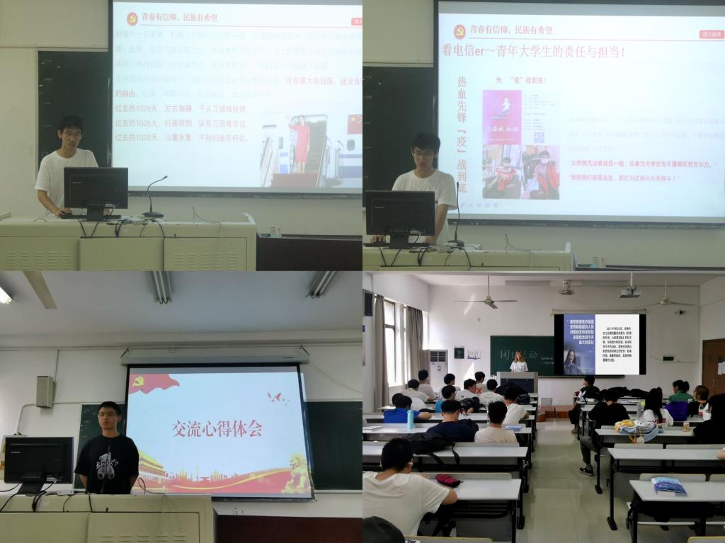 在班级团日活动中,各班团支部通过观看孟晚舟女士回国视频,感受“孟晚舟归国事件”的艰辛历程,与同学们共同学习“孟晚舟归国感言”,展现一系列爱国主义教育的内容。舟虽晚,终归航,祖国的灯塔,一直为你点亮,孟晚舟女士,欢迎回家!学习结束后,班级团员们分别交流了心得体会。
