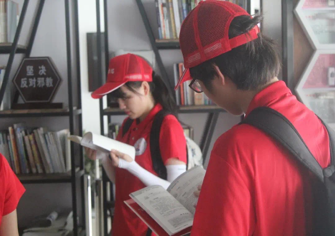 下午,反邪教暑期实践队在区政法委安全稳定指导科平安创建中心副主任罗利红的带领下走访了桐屿街道反邪警示基地,在此地实践队队员通过观阅反邪书籍,反邪宣传栏,来丰富自己对于反邪方面的知识贮备,用“科学驱散邪教阴霾,用知识书写人生精彩”这句话篆刻在每一位实践队员心中。