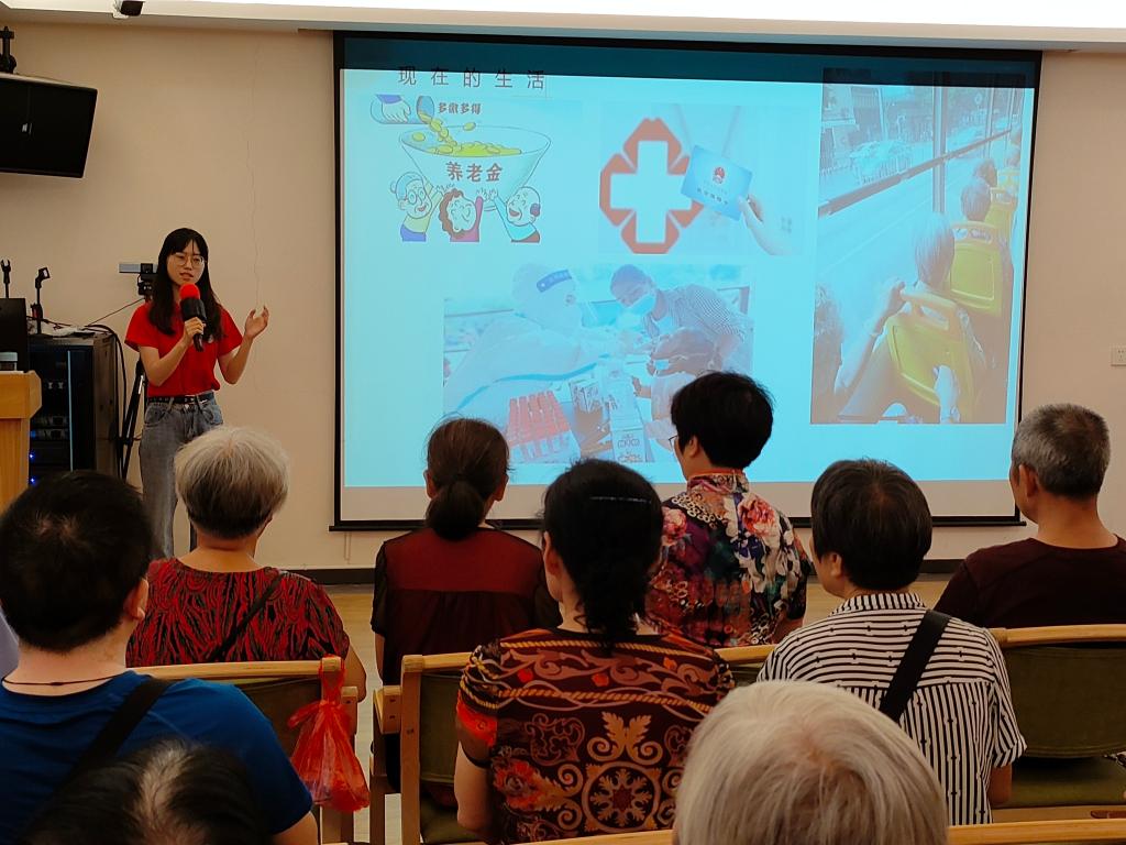 据悉,为了更加接地气,讲好身边的故事,公司反邪教暑期社会实践队针对老年群体,主讲人专门采用通熟易懂的方言与普通话结合的形式,向社区群众讲述了邪教组织的本质特征、种类,及对个人、家庭、社会等造成的危害,以及如遇邪教活动或邪教人员拉拢引诱该如何应对等反邪知识。在宣讲过程中,为方便居民对反邪知识的理解,实践队将“硬核”的反邪知识与老年人喜闻乐见的戏曲和“有奖问答”等形式相结合:通过观看由经典黄梅戏《女驸马》选段改编的反邪宣传曲,增强群众反邪关注度;用“判断案例是否属于邪教”的有奖问答环节,揭穿邪教宣传的骗局和花样。