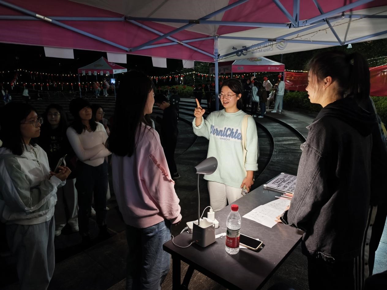 夜色降临,一首《Hey Kong》点燃现场,纳凉晚会正式拉开序幕,现场气氛活跃热闹,欢声笑语不断。本次活动主要是由心理博弈,反应测试,肺活量大赛,记忆力大赛,反邪灯谜大乐透这五个小游戏,以及“写出你心声表白墙”和“想唱就唱”组成。