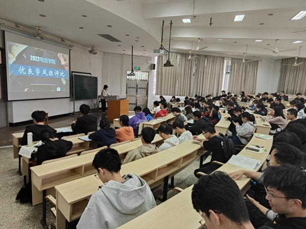 据悉,此次评选主要从班级班貌、班级活动、班级展示等方面。评比伊始,陈婷婷老师上台宣讲评比事项,而后20、21级各班班长依次上台展示,分别从班级结构、班级风貌、学习情况和获奖荣誉等多个角度汇报班级各项情况。从各班班长的展示中,我们更清晰地了解到每个班级的优良班风班貌和班级情况,感受到了各个班级的凝聚力,同时也了解到各专业在各类各级别的赛事中取得优异的成绩。个人的荣誉为班级增添光彩,一个优秀班风的形成离不开班级里每位同学的努力,同样班级里的成员也收益于该班的优良学风建设。