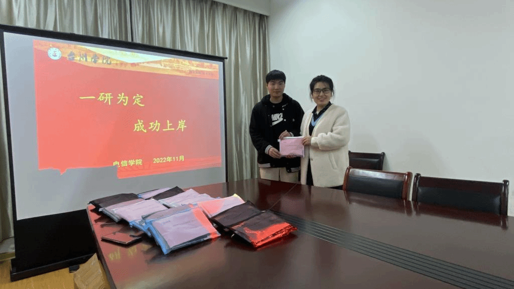 各毕业班辅导员叮嘱考研学子们在考研冲刺阶段一定要坚定信心,注意劳逸结合,放松心态,注意饮食,调整作息,以最好的心态和最好的状态迎接考试。最后,老师与同学们一起为考研学子发放暖心礼包,一套考研文具及《考研寄语》,希望同学们坚持到底,付出一定能得到回报,做到“一研为定,成功上岸”。