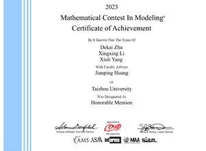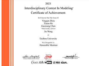 2023年美赛Honorable Mention奖获奖证书