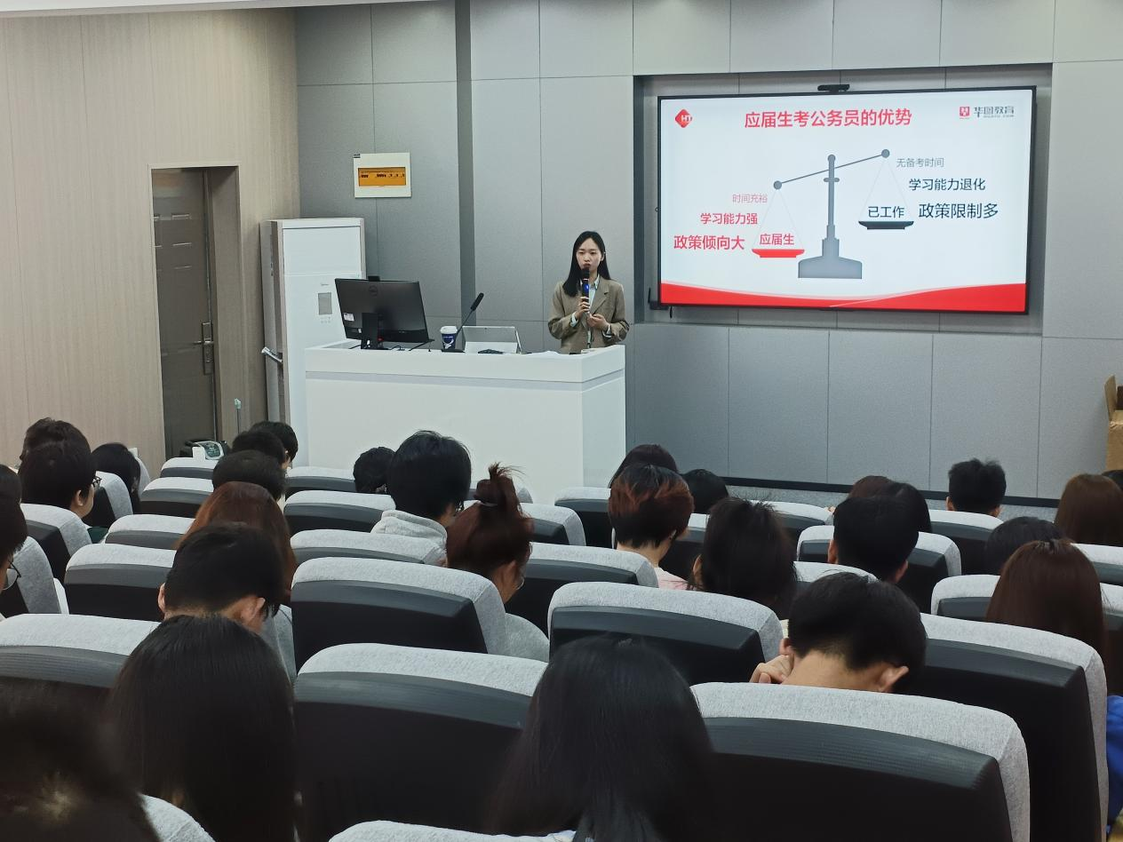 讲座期间,沈胜男结合自己成长的经历畅谈了大学期间做好分类职业规划的重要性。同时,着重围绕着应届生考公务员的优势,立足于多年的教学经验,就考公题型、做题方法、得分技巧等方面展开讲解。她以浅显易懂的语言为同学们答疑解惑,台下同学认真听讲,积极互动,讲座氛围融洽。