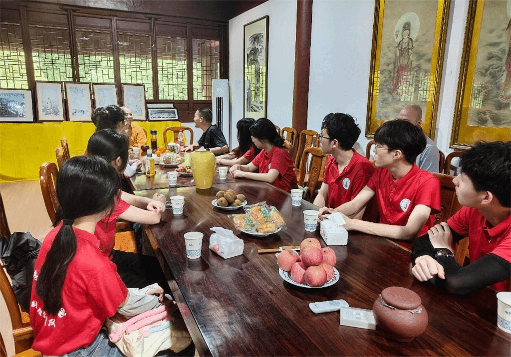 随后,实践队来到三峰寺,三峰寺是临海市重要的佛教圣地,有着悠久的历史与深厚的文化积淀,更是临海市宗教反邪工作的重要阵地。对寺庙进行参观后,队员们与三峰寺的主持释真旭法师进行了座谈。真旭法师为实践队员讲解了宗教与邪教的本质区别,讲授了辨别宗教与邪教的方法,队员们对宗教反邪在反邪工作中发挥的重要作用有了深入的认识。