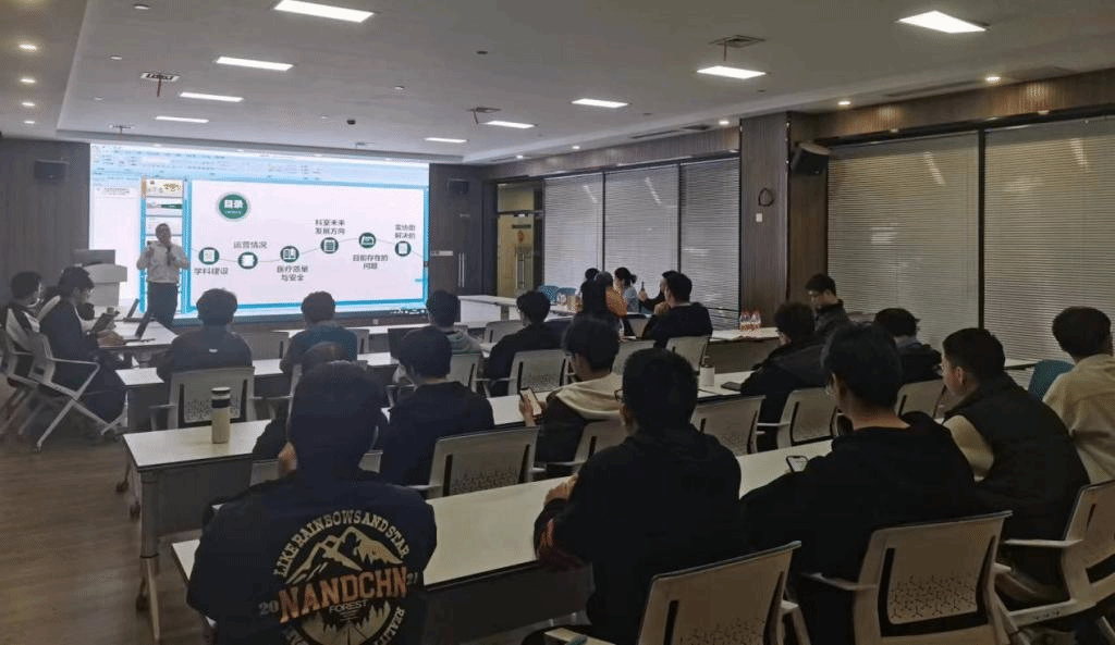 郭文平副经理对台州市第一人民医院在医疗科研领域所取得的成果表示赞赏,并简要介绍了意昂医疗大数据团队的重点研究方向和近期的研究成果。随后与会研究生报告了文献阅读和近期科研进展情况。最后张石清经理作总结发言,他指出,本次交流会的成功举办,标志着台州市第一人民医院与意昂的合作迈上新台阶,也为公司相关研究团队和研究生提供了一个近距离了解医疗机构实际需求的机会,有助于拓宽视野、激发创新思维,为进一步开展医工信交叉研究提供有益的启示。
