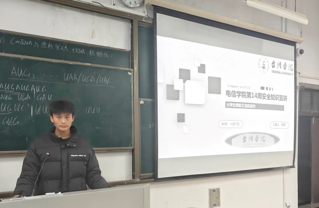 周宣讲内容以防范电信网络诈骗、防范盗窃、禁毒教育、消防安全等为主题,负责安全工作辅导员每周一对安全信息员进行线上培训,对宣讲内容进行解读,安全信息员根据所提供的材料进行创作性修改。在此过程中,安全信息员的安全知识变得扎实、宣讲能力得到锻炼,同学们在每周安全宣讲的浸染中,防范意识潜移默化中得到提升。