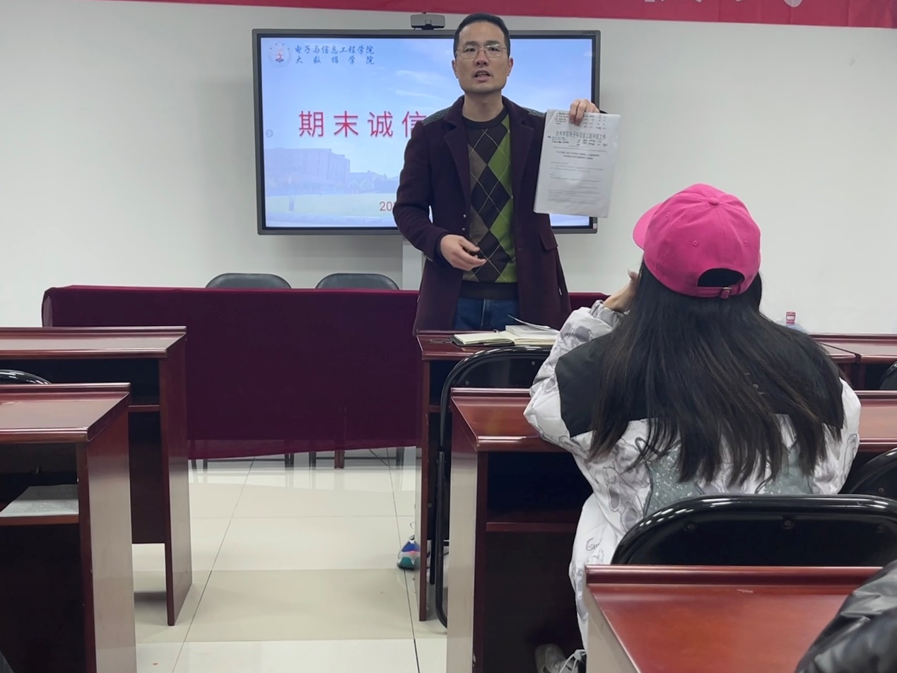 会上,两位主任带领同学们重温《员工手册》中诚信考试相关内容,引导同学们充分知晓考试作弊的严重后果,自觉抵制违纪作弊行为,强调考试是展示知识和能力的时刻,更考验着同学们的品德和诚信。同时,也鼓励同学们以积极乐观的心态对待考试,树立文明考风,遵守校规校纪,做到诚实守信。