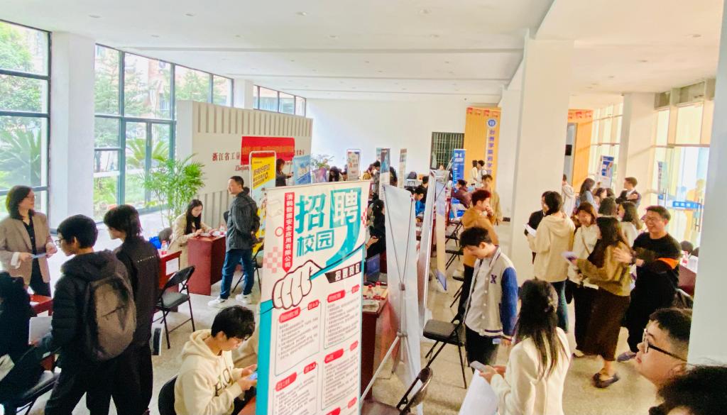 双选会现场气氛热烈、秩序井然。各招聘单位展位前,学子们手持简历与用人单位面对面交流,用人单位耐心细致地介绍了岗位需求、技能要求及薪酬待遇等情况。其中,屹晶微电子(台州)有限公司、兴业银行股份有限公司台州分行、台州市乐利电子科技有限公司、杰克科技股份有限公司等企业备受员工关注。