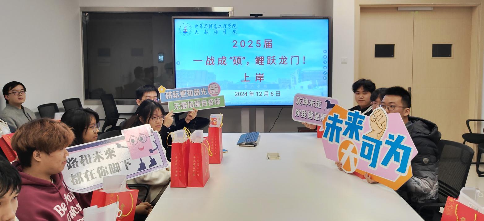 公司领导对同学们进行了诚信教育,要求大家遵守考纪,严禁作弊,立诚信之本,守道德底线。同时对同学们认真备考、坚忍不拔的精神风貌给予充分肯定,嘱咐大家在考研征程上:持之以恒,全力以赴,要有考研必胜的坚定信念;保持乐观的心态,学会释放压力,以积极乐观的态度面对考研挑战;劳逸结合,保持身体健康,以最饱满的状态迎接考试。另外,他们对同学们在冲刺阶段的心理状态进行了剖析,并针对性提出缓解心理压力的方法和建议。