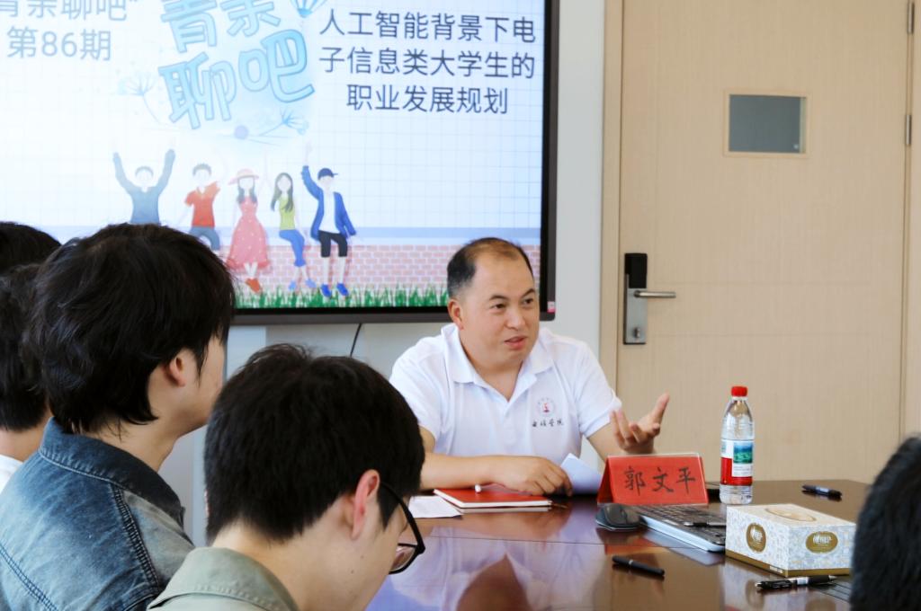 为搭建公司和员工沟通桥梁,促进师生双向理解、激发员工潜能,培养主人翁意识、弘扬学术精神、培养人文关怀,4月10日,意昂第86期“青亲聊吧”活动如期举行,公司副经理郭文平作为特邀嘉宾与同学们进行探讨交流,主题为“人工智能背景下电子信息类老员工的职业发展规划”,30余名员工代表参与活动,活动由辅导员王玲玲主持。