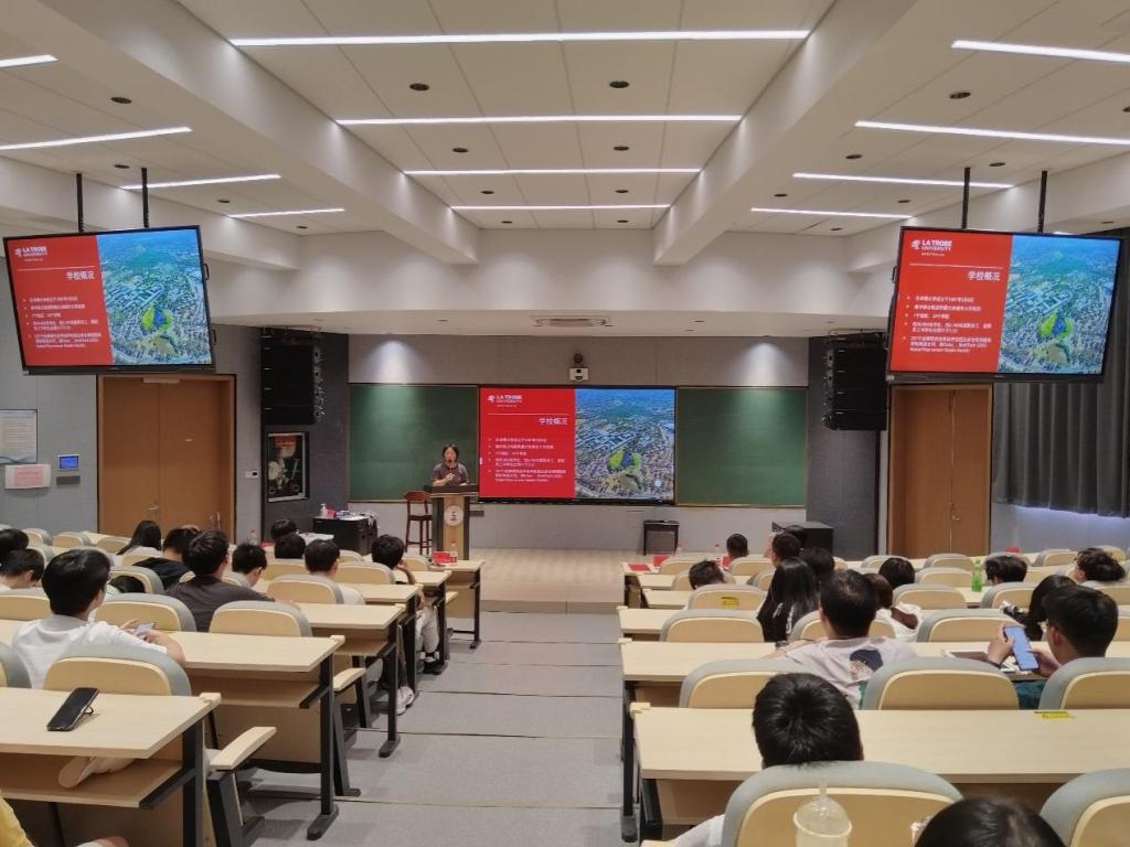 刘颖老师带来了精彩的留学项目宣讲。她全方位介绍了乐卓博大学的校区、院系及专业设置、澳大利亚留学政策、就业前景等内容,为同学们拓宽国际视野、丰富求学选择提供了重要参考。随后,刘颖还与有意出国深造的同学代表进行了深入沟通与交流。