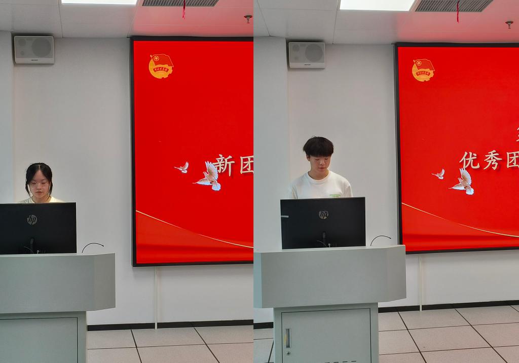 仪式上,新团员代表林芊含同学走上讲台,声音中带着难掩的兴奋:“今天,我光荣地成为共青团的一员,未来,我会将专业知识融入实践,用代码书写青春,用创新点亮梦想,不负团员使命!” 老团员代表王子墨同学则分享了自己参与公司科创项目的经历,鼓励新团员们“在实验室的深夜坚守中锤炼意志,在团队协作里提升能力,让青春在电子信息的浪潮中绽放光彩”。