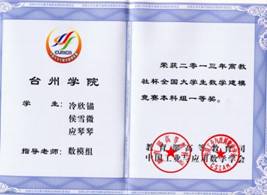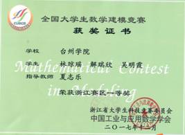 数学建模竞赛获奖证书