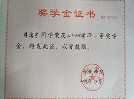 2016学年、2017学年浙江省政府奖学金、2016学年校一等奖学金、2017学年校一等奖学金。