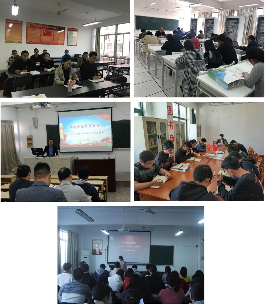 各党支部书记领学了《中共中央关于坚持和完善中国特色社会主义制度推进国家治理体系和治理能力现代化若干重大问题的决定》,传达了十九届四中全会精神,解读了党的十九届四中全会公报关键词。